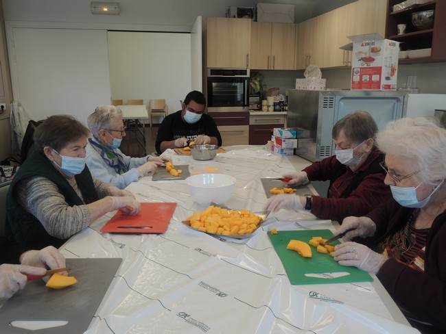 Ce menu facile à manger a été concocté pour des résidents rencontrant des difficultés nutritionnelles. Un groupe de pensionnaires a préparé ce repas pour d’autres qui n’y parviennent pas….