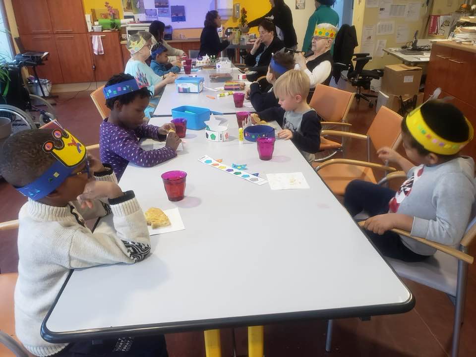 Les enfants du périscolaire Les Ouistitis de Blozheim ont dessiné des couronnes avec les résidents de L’EHPAD sur Saint-Louis (site Blanche de Castille).