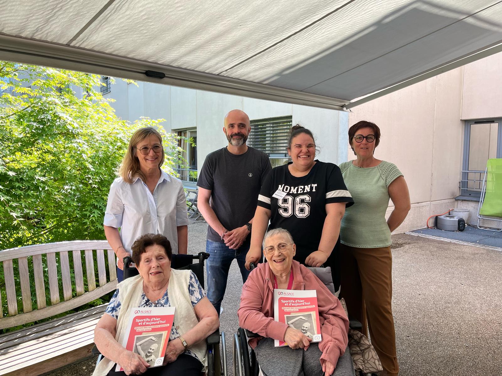 Le mardi 29 avril, Madame Schmidiger, Maire de la Ville de Saint-Louis, accompagnée de Madame Munsch, coordinatrice de parcours à la Collectivité européenne d’Alsace, est venue féliciter les résidents de l’EHPAD sur Saint-Louis, site de la Maison du Lertzbach, pour leur participation active au projet "Sportifs d’hier et d’aujourd’hui".